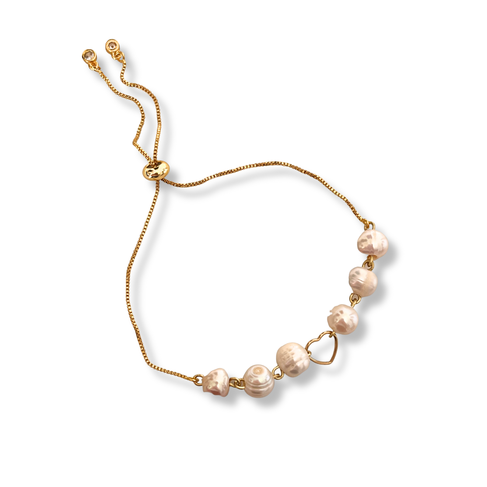 The Heartstrings Pearl Bracelet is a romantic and timeless piece, featuring a mix of lustrous freshwater pearls and a delicate gold heart centerpiece. Designed with an adjustable chain for a comfortable fit, this bracelet makes a meaningful gift or a luxurious everyday accessory. Add a touch of elegance and love to your wrist with this stunning piece.